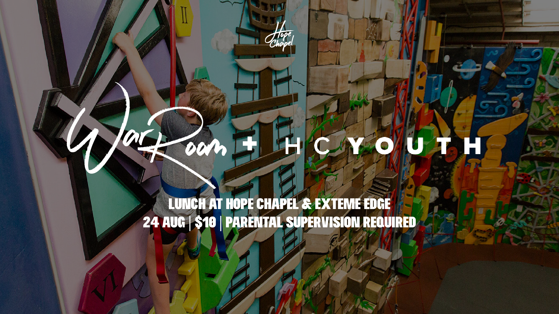 Calling all teenagers and pre-teens! Come join us after church on Sunday 24th of August for lunch at church after the service and a trip to Extreme Edge for a fun afternoon of rock climbing! The cost is $10 per person. Please arrive at Extreme Edge by 1pm. Parent supervision is required for War Room aged children. Please register so we can know numbers for catering.